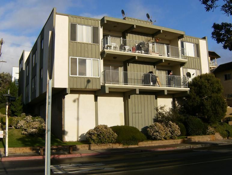 $1950 ONE BLOCK TO THE BEACH!! This cozy upper rear unit offers a "kitchenette" with small stove and fridge (does not have a full separate kitchen. No kitchen sink.) New laminate hardwood plank floors and ceiling fan. A wall with pocket door that separates the living area from the sleeping area for privacy. This unit is and end unit with a deck off the front door and a small ocean view. Shared courtyard. Coin laundry. Close to restaurants and shops. Great location!! ONLY CATS ALLOWED!! AVAILABLE NOW!!