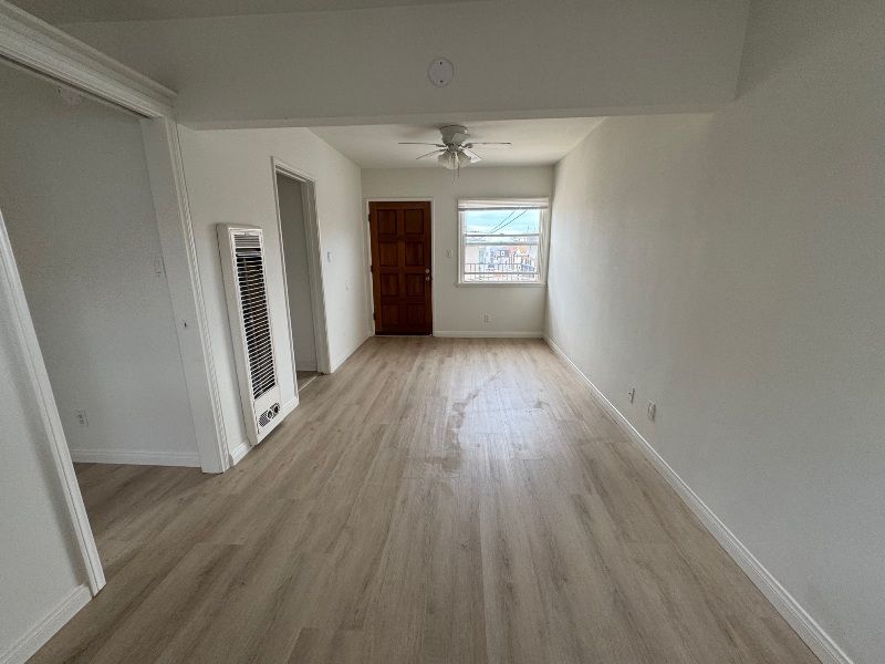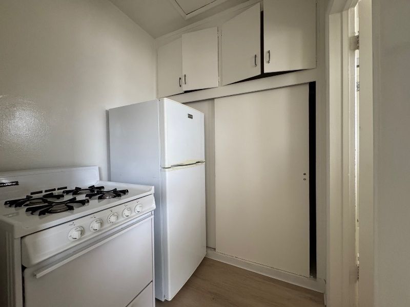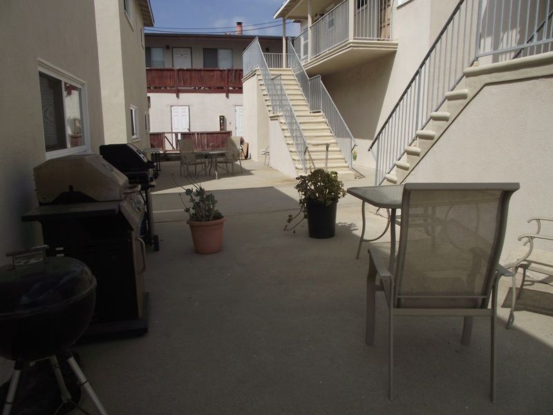 $1975 ONE BLOCK TO THE BEACH!! This cozy upper rear unit offers a "kitchenette" with small stove and fridge (does not have a full separate kitchen. No kitchen sink), new laminate hardwood plank floors, a ceiling fan, an alcove with a pocket door separates the living area from the sleeping area for privacy. A deck off the front door and shared courtyard. Coin laundry. Close to shops & restaurants. Can't beat this location! ONLY CATS ALLOWED!! AVAILABLE NOW!!